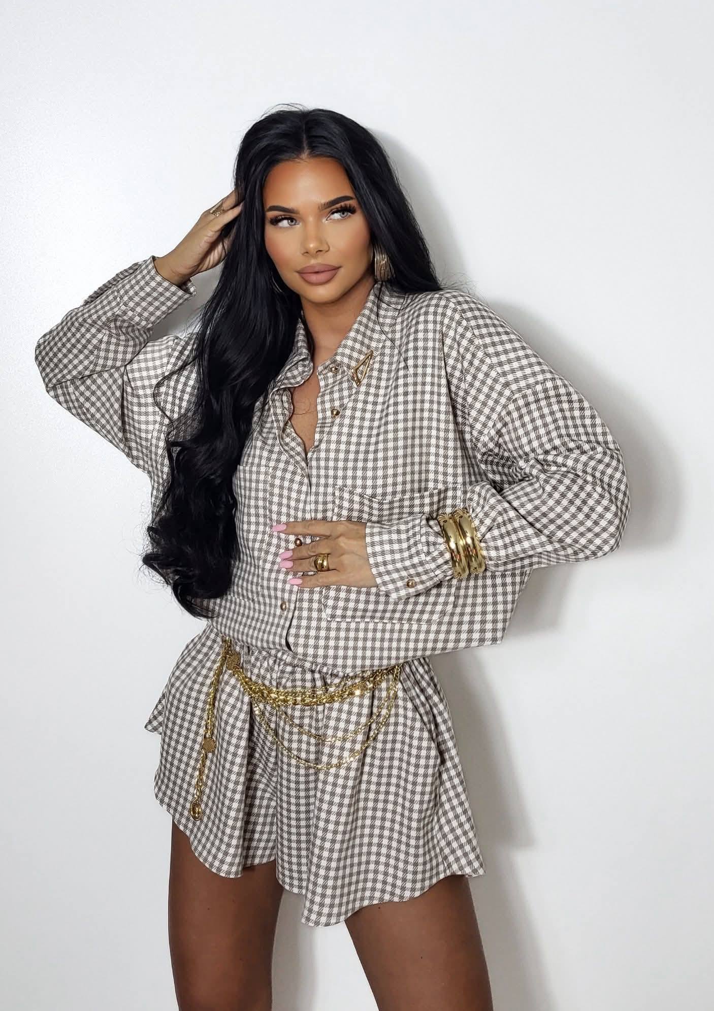 Kariertes Set Hemd+Shorts Besquar